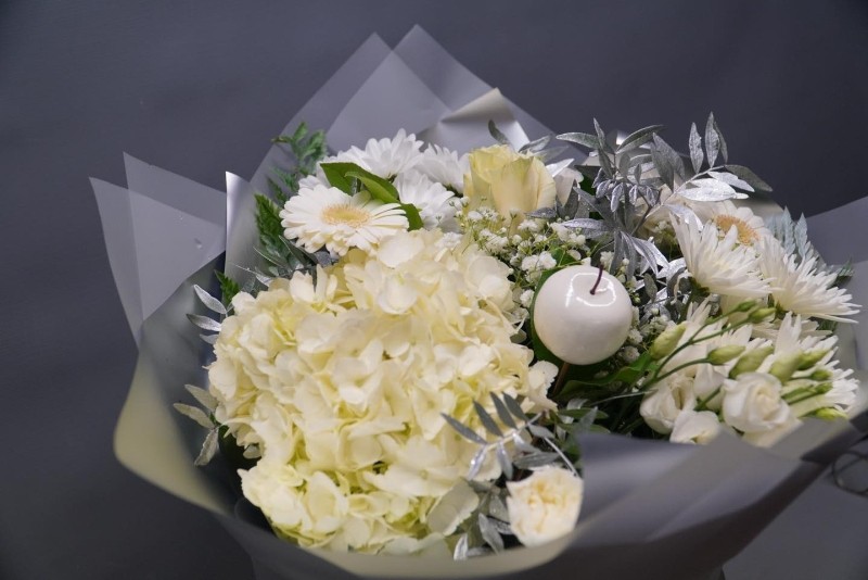 Simplicity is all people are after sometimes and this bouquet portrays that brilliantly, using a variety of all white flowers, which gives a beautiful christmassy feel, modern and sleek, this colour scheme really goes down well with all generations (FLORIST CHOICE, FLOWERS MAY VARY)
