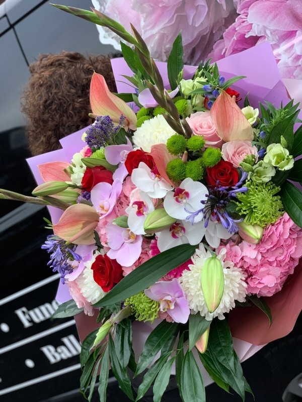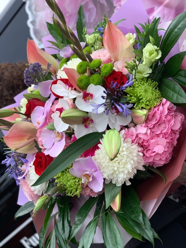 A delicate mix of Orchids, Roses, Lilies, hydrangeas, Blooms and many more, this bouquet gives huge variation for flower lovers and promises to sweep your loved one off there feet! Its absolutely huge!